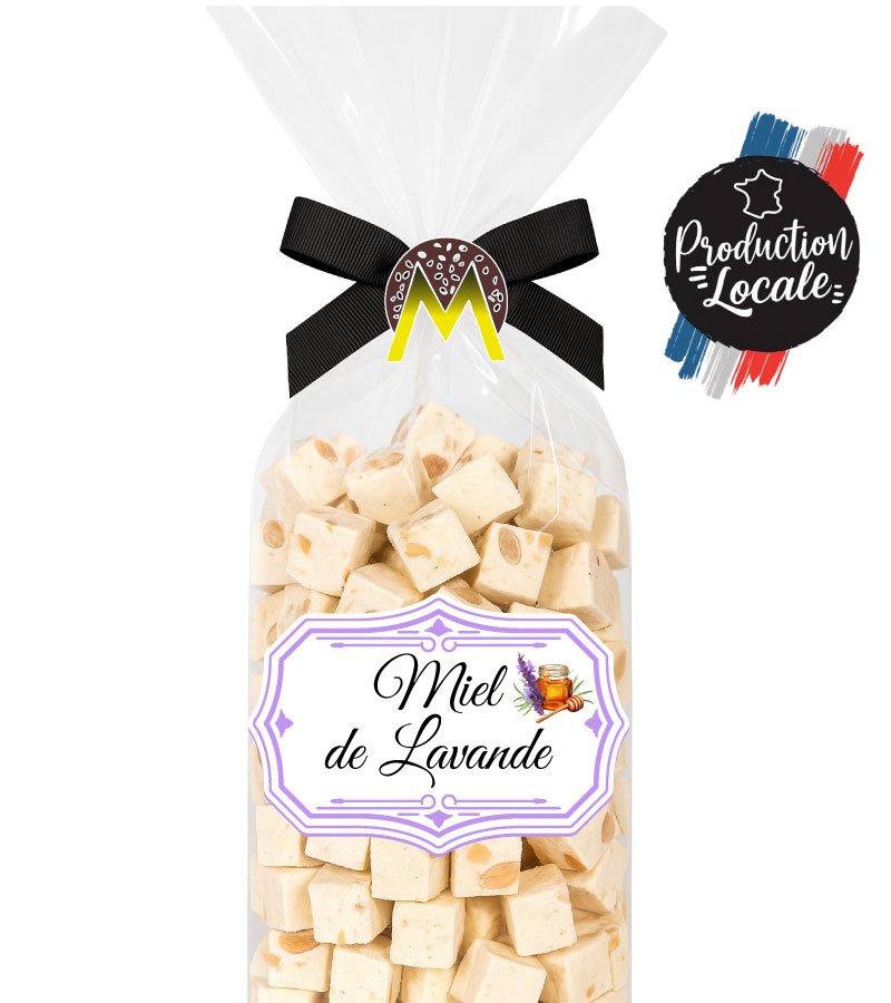 Ingrédients : miel de lavande, sucre, blancs d’œufs, sirop de glucose